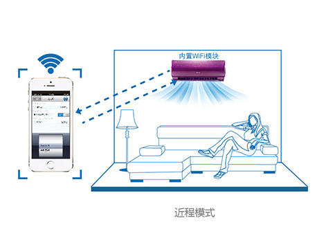 近程模式 無需家庭無線路由器,智能終端可直接連接空調(diào)進(jìn)行遙控,適用于家庭近距離遙控。 |