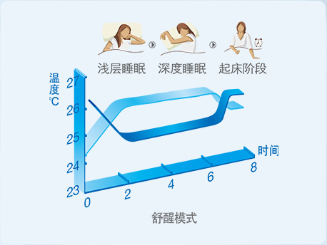 舒醒模式:具有特色醒神功能,起床前,溫度會(huì)依照程序適當(dāng)?shù)淖詣?dòng)降低或升高,讓您在清晨神清氣爽,精力充沛地開(kāi)啟新的一天。 |