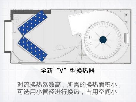 采用“V”型換熱器,開(kāi)機(jī)初期,根據(jù)室內(nèi)溫度與設(shè)定溫度自動(dòng)調(diào)節(jié)至高頻狀態(tài),縮短制冷或制熱時(shí)間,提升舒適度。 |